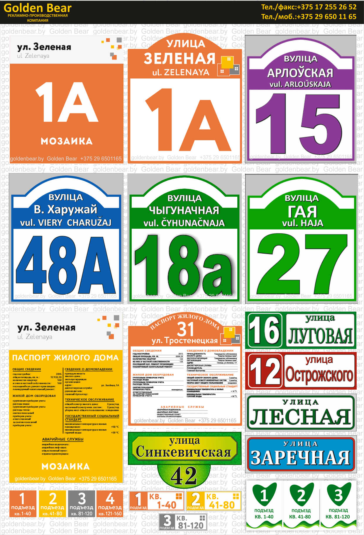 Таблички на дом, домовые знаки, аншлаги. Таблички на подъезд, паспорта домов, доски объявлений, информационные доски, нумерации подъездов, квартир и этажей и т.д.