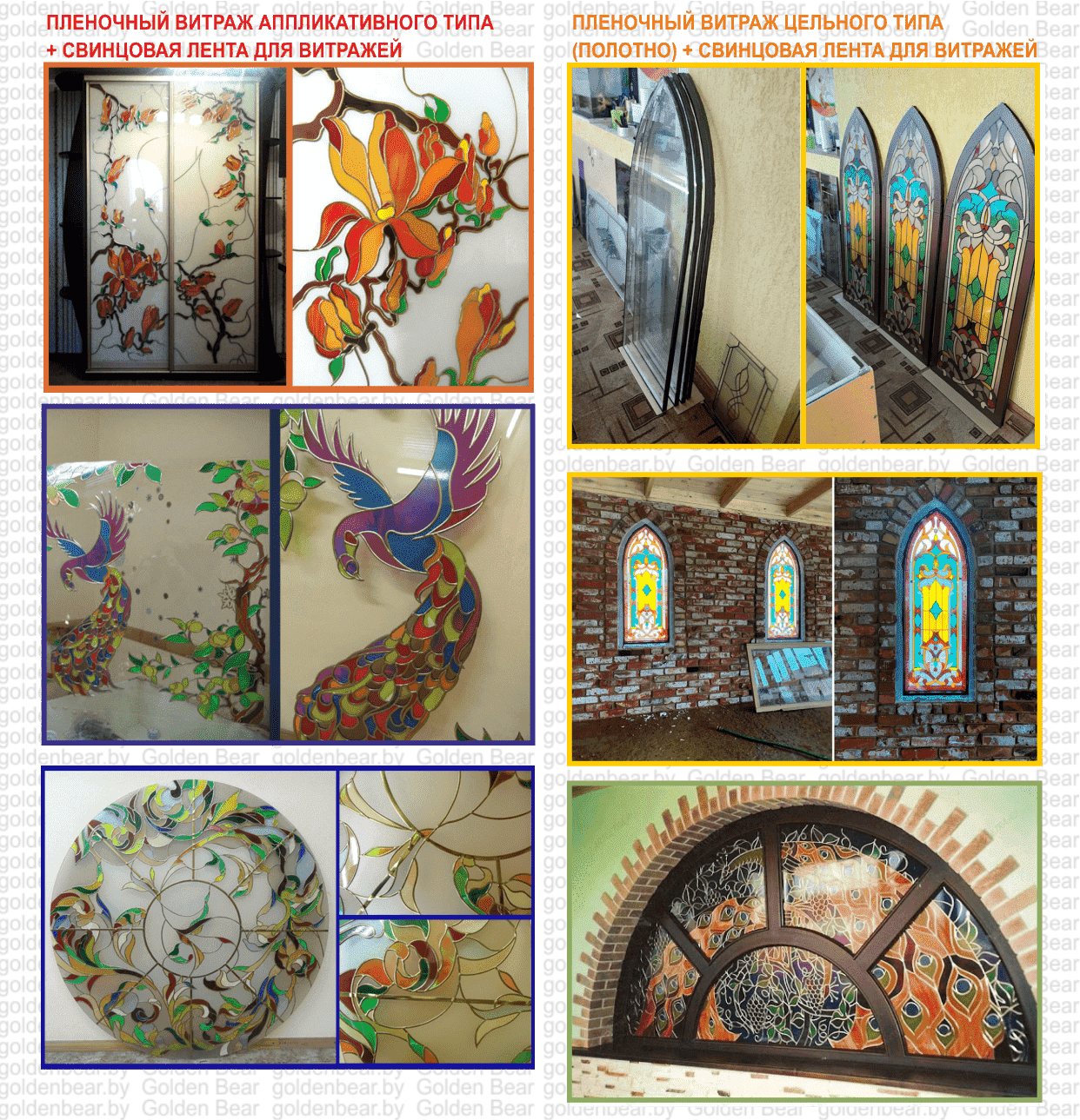ВИТРАЖИ. ВИТРАЖ ПЛЕНОЧНЫЙ ЦЕЛЬНОГО ТИПА. ВИТРАЖ ПЛЕНОЧНЫЙ АППЛИКАТИВНОГО ТИПА. СВИНЦОВАЯ ЛЕНТА ДЛЯ ВИТРАЖЕЙ.