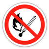 «Запрещается пользоваться открытым огнем». Используется, когда открытый огонь и курение могут стать причиной пожара. На входных дверях, стенах помещений, участках, рабочих местах, емкостях, производственной таре.