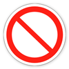 Запрещающие знаки предназначены для запрещения определенных действий и  должны быть следующими: круг красного цвета с белым полем внутри, белой по контуру знака каймой и символическим изображением черного цвета на внутреннем белом поле, перечеркнутым наклонной полосой красного цвета (угол наклона 45°, слева сверху направо вниз). Ширина кольца красного цвета должна быть 0,09-0,1 внешнего диаметра, а ширина наклонной красной полосы — 0,08 внешнего диаметра, ширина белой каймы по контуру знака — 0,02 внешнего диаметра. Допускается применять запрещающие знаки с поясняющей надписью, выполненной шрифтом черного цвета. При этом наклонную красную полосу не наносят. Мы рада предложить Вам изготовление знаков безопасности под заказ из следующих материалов: