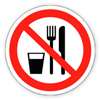 «Запрещается принимать пищу». На местах и участках работ с вредными для здоровья веществами, а также в местах, где прием пищи запрещен. Область применения знака может быть расширена.