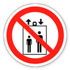 «Запрещается пользоваться лифтом для подъема (спуска) людей». На дверях грузовых лифтов и других подъемных механизмах. Знак входит в состав группового знака безопасности «При пожаре лифтом не пользоваться, выходить по лестнице».